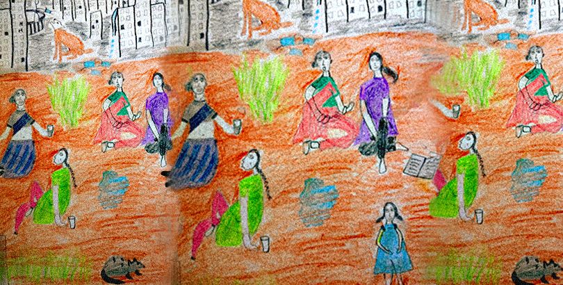 Neelam sits next to me laughing, “Kya didi, aaj chawal nahi laye hamare liye?” “What happened, you didn’t bring rice for us today?” I first met Radha, Nasima and Suman, along with other workers in Chinappa Layout, during the first lockdown. I did not know the area, hidden away amidst the IT industrial corridor, along the Whitefield main road. It was during weekly rounds of ration distribution that I became familiar with the workers who live there- construction workers, waste recyclers, domestic workers and security guards. When the lockdown eased, I continued visiting the area to find out how they are doing. We fell into a familiarity, but the jokes about me as the ‘ration didi’ never ceased, constantly reminding me of the tense circumstances under which we met: long afternoons spent distributing packets of food, and making uncomfortable decisions about how much ration would suffice for each family.